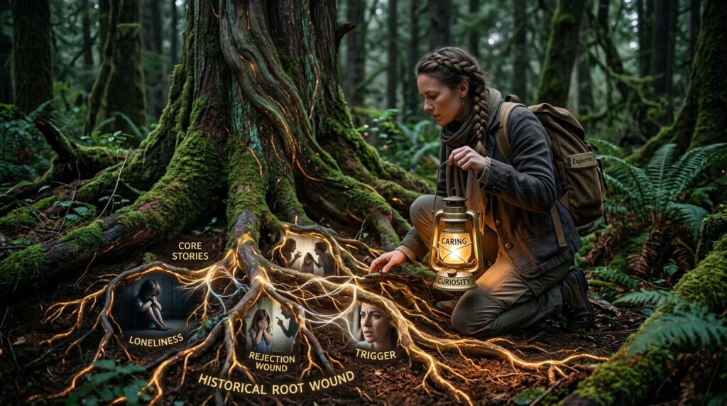 The teaching emphasizes that triggers and emotional reactions are “pointing you back to a root”. This aligns with the psychodynamic understanding that symptoms are often disguised expressions of forgotten and repressed emotional experiences. Rather than being a form of cosmic punishment, these repetitions are “showing you something,” acting as navigational markers for the soul’s evolution. The “root” represents the original point of wounding or the primary belief system formed during childhood or intergenerational trauma. Within this root, the teaching asserts, lies the individual’s “freedom”.